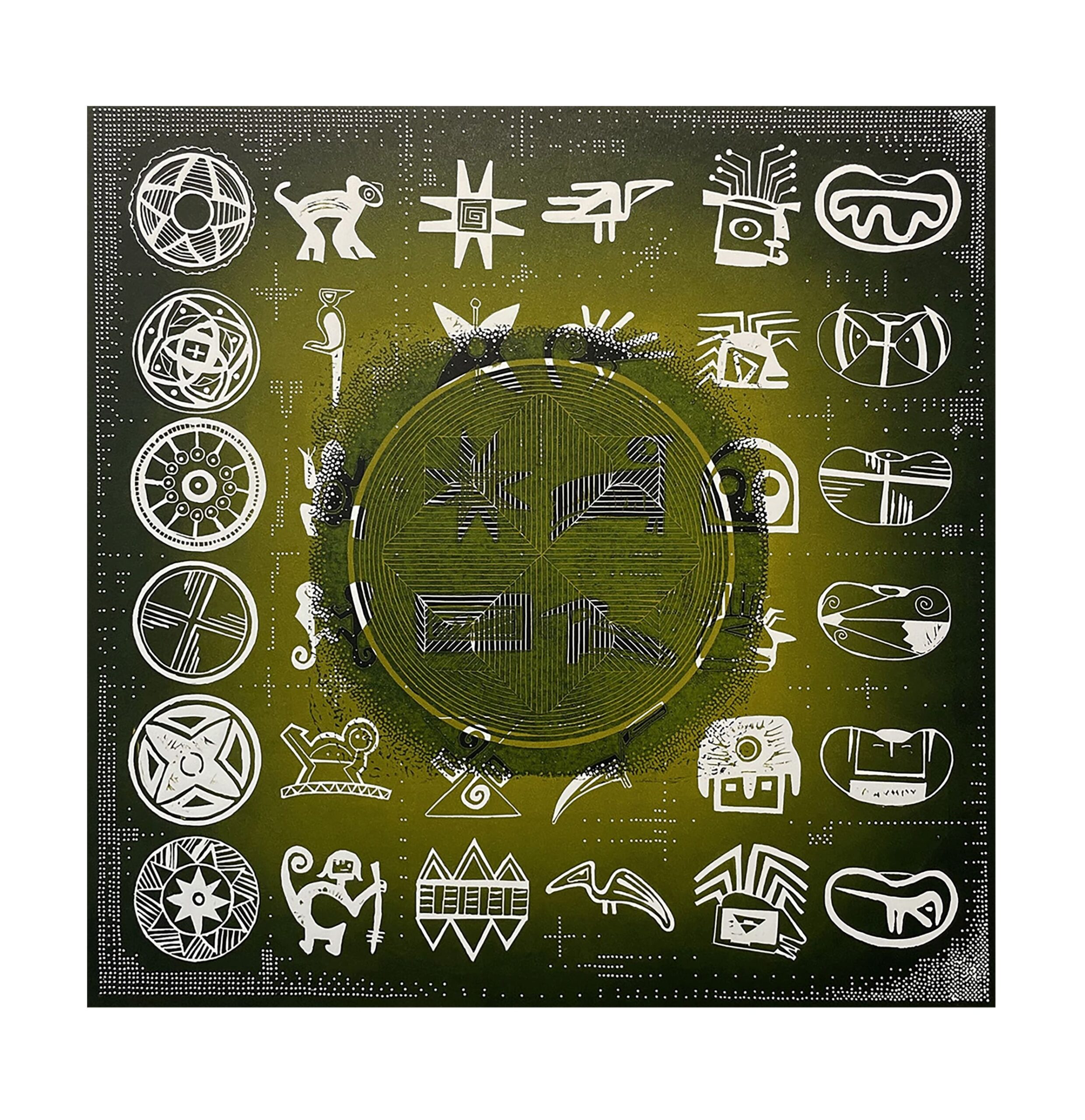 Lino-print over stonehenge warm white 90lb. paper