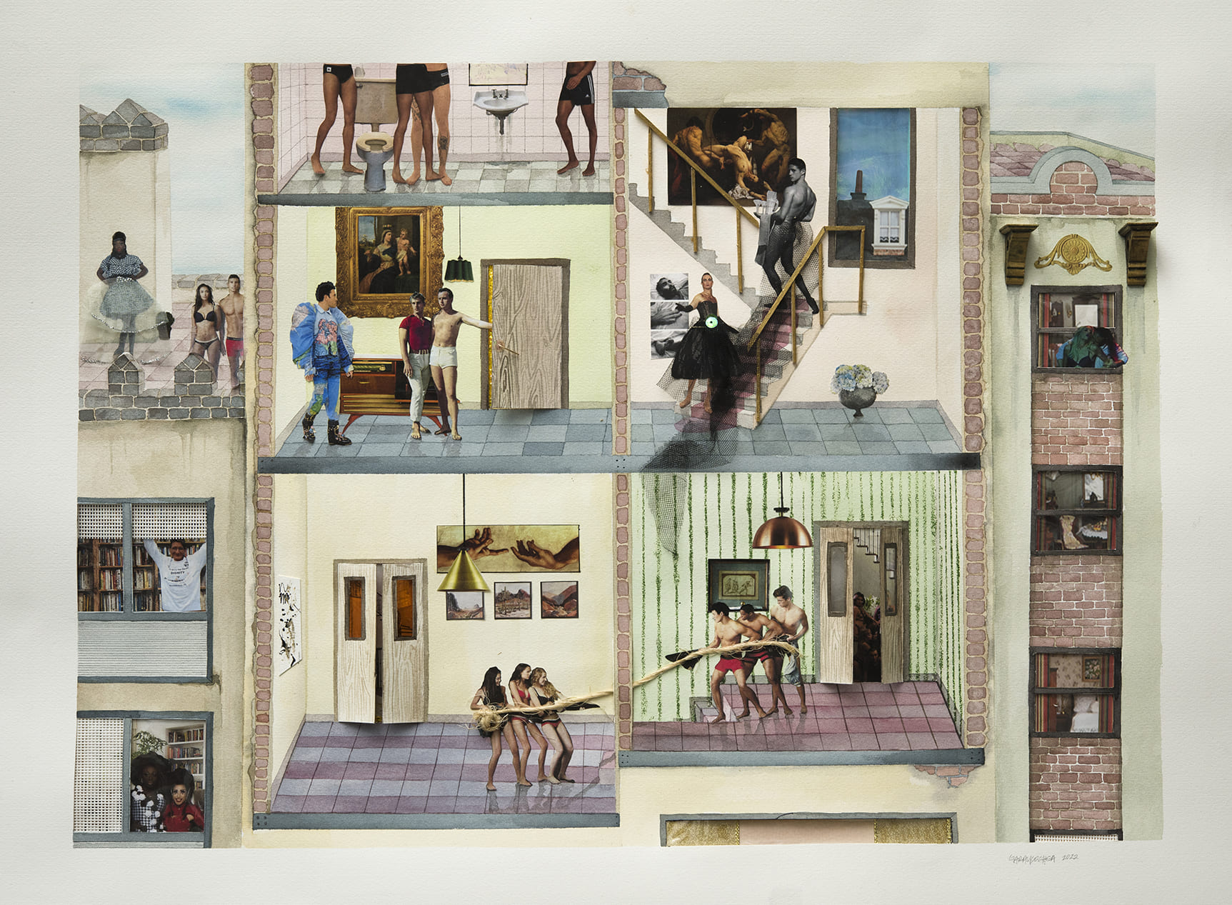Watercolor, cut-out images, and other elements.